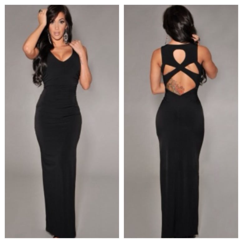 Ruched Asymmetrical Maxi Dress with Cross Black $30.00