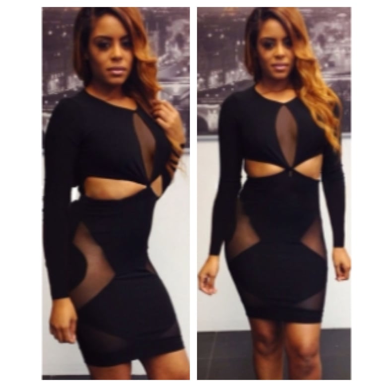 Long Sleeve Black Bodycon Dress with Mesh $30.00