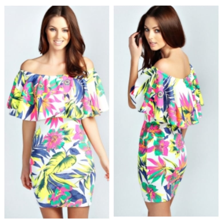 Floral Print Off Shoulder Bodycon Dress $20.00