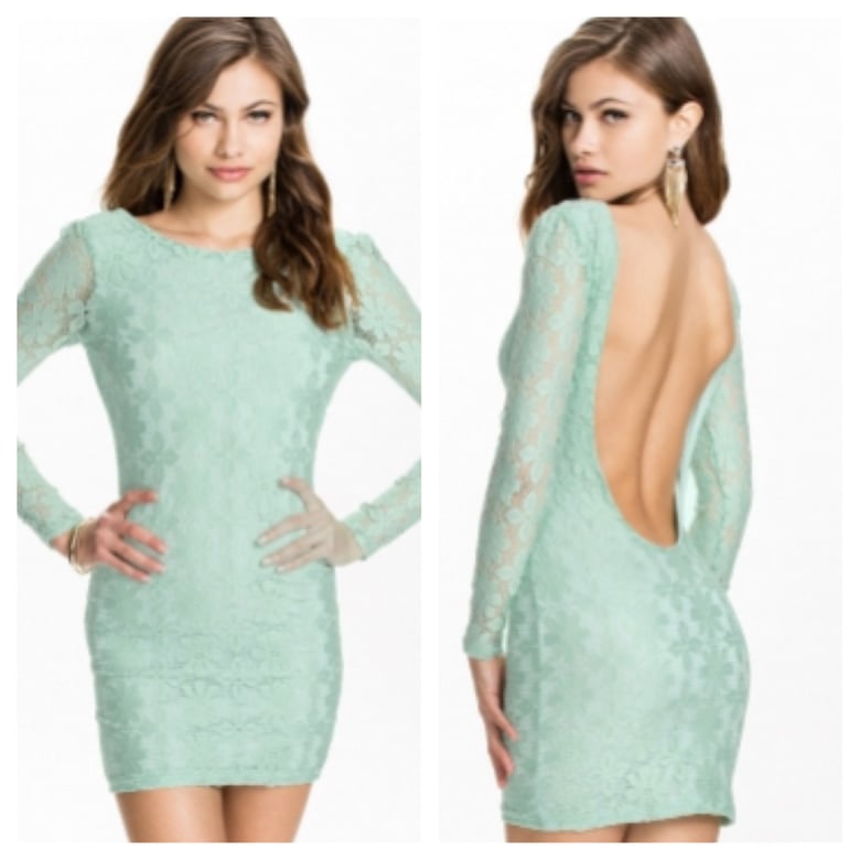 Long Sleeve White and Black Mesh Bodycon Dress $30.00