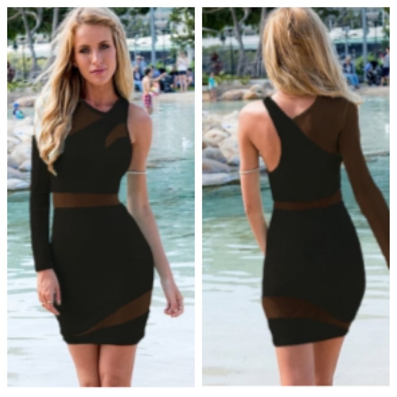 Black One Sleeve Asymmetric Dress with Mesh $23.00