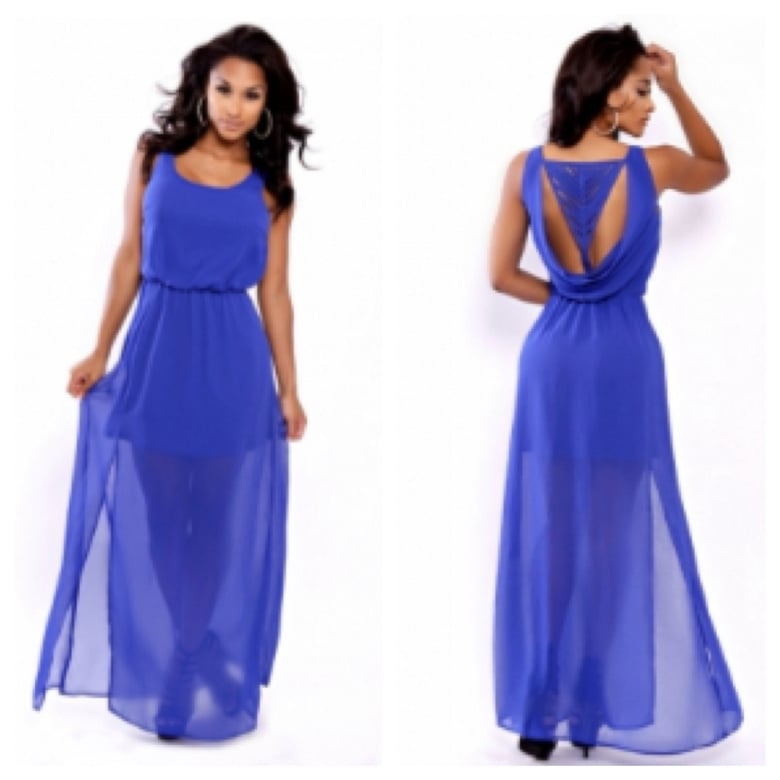 Drape Cut Out Back Chiffon Maxi Dress $27.00
