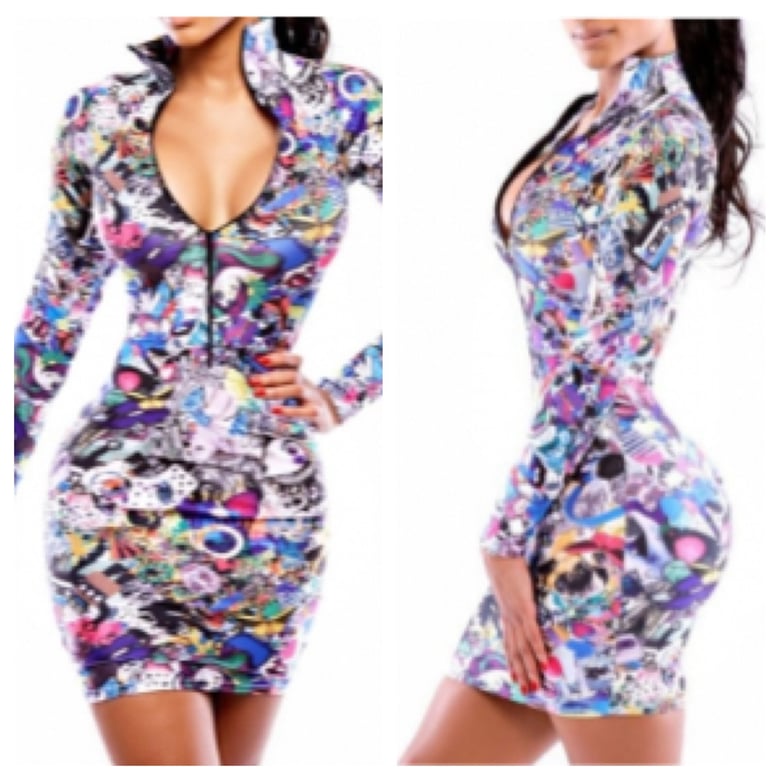 Multicolor Long Sleeve Bodycon Dress $25.00