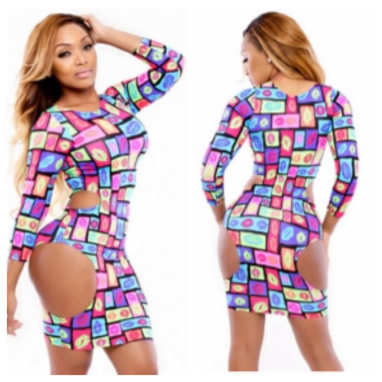 Lip Print Side Cut Out Bodycon Dress $25.00