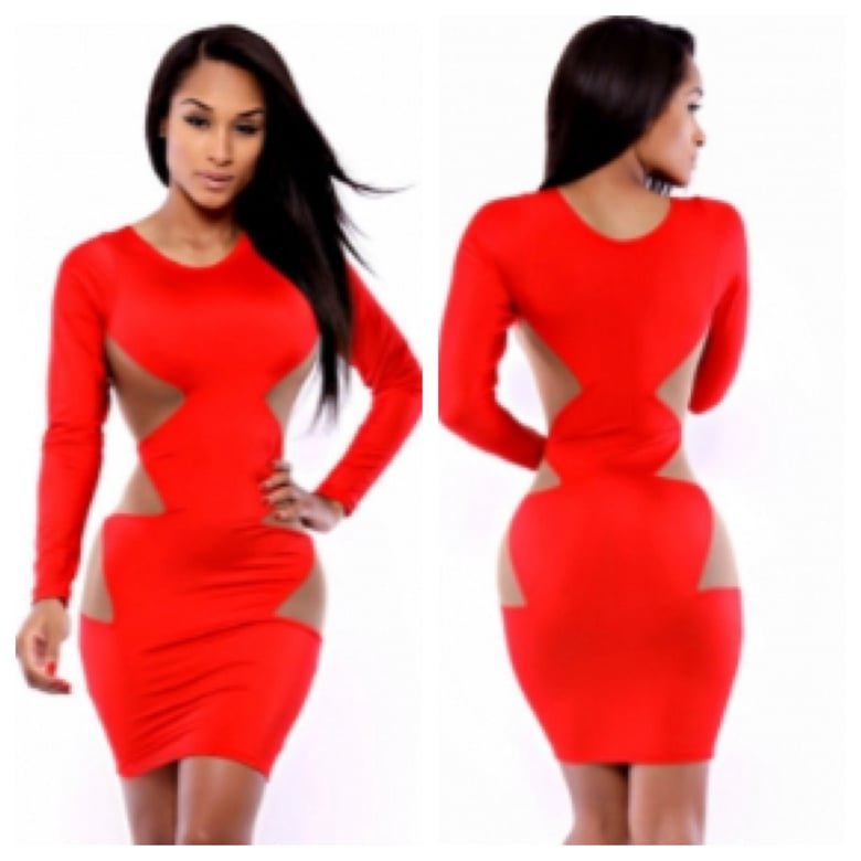 Side Cut Out Bodycon Dress with Mesh $25.50