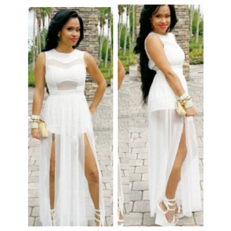 White & Royal Blue Wide Leg Jumpsuit $29.00