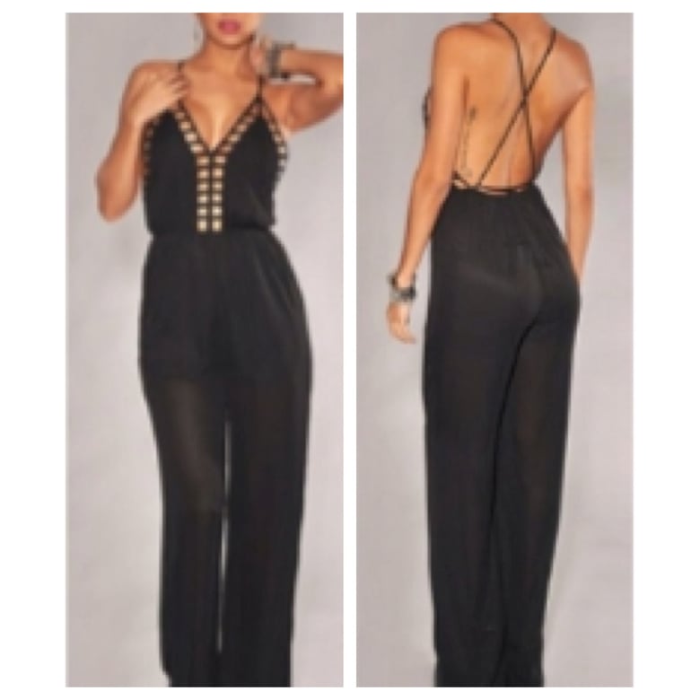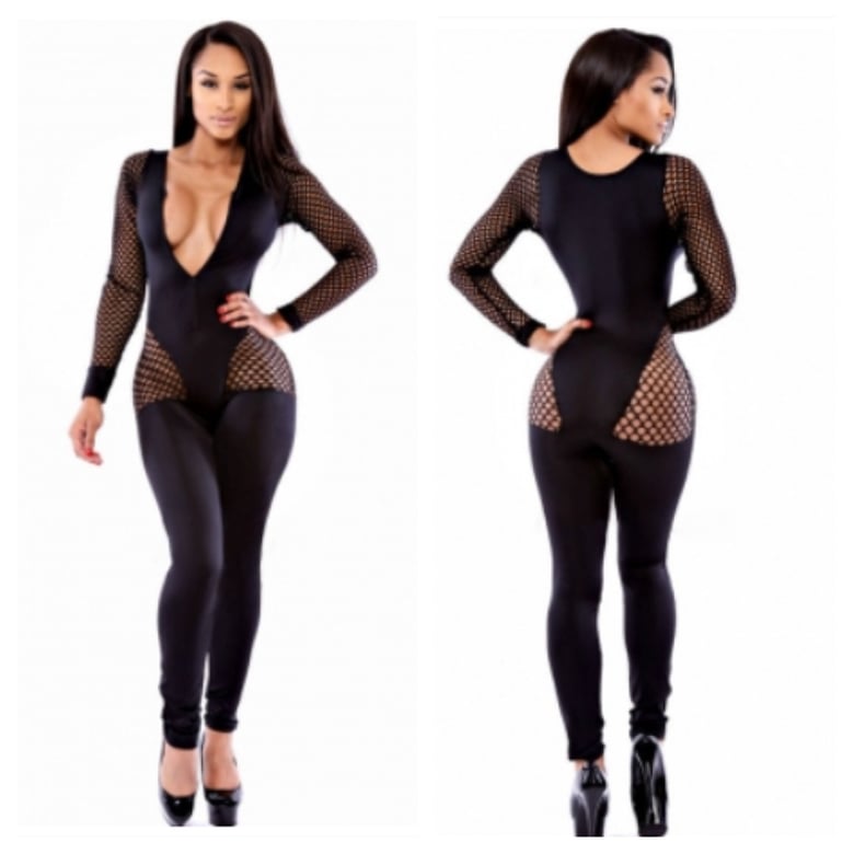Black with Mesh Off Shoulder Jumpsuit $27.00